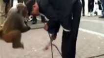 Uganda... A tourist went to the high forests to watch monkeys. A monkey man approached her and began touching her hair. A monkey female came and punished him out of jealousy.