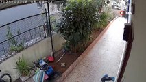 Kargo paketleri ile basketbol pratiği yapan kargocu kamerada