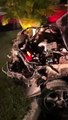 Carro fica destruído após invadir estacionamento de shopping e capotar