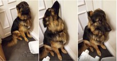 Cão sente o peso da culpa por algo ruim que fez e não consegue olhar a dona nos olhos