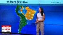 Enquanto isso, grande parte do Brasil segue com tempo firme, sem previsão de chuva, e temperaturas elevadas. Destaque para o centro-sul do país, onde o calor predomina com temperaturas podendo alcançar os 37°C em Cuiabá, 35°C em Palmas e Teresina, e valores acima de 30° no interior paulista.