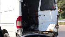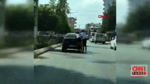Hatay'da arka camı olmayan TOFAŞ'ın arka kısmından dışarı sarkan çocukların trafikteki tehlikeli yolculukları kameraya yansıdı.