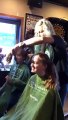 The head shave took place in front of friends and shoppers at an art exhibition held in Alymer Square in the centre of St Austell.