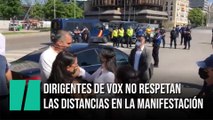 Tocándose y sin respetar la distancia: Dirigentes de Vox, en la manifestación en Madrid
