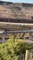 En #Tijuana colapsó una grúa en las obras del viaducto elevado a la altura del #CañónOtay debido a una falla mecánica.#PaolaRojasDPC