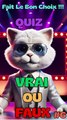 Préparez-vous à un véritable duel intellectuel ! Ce quiz Vrai ou Faux est plus qu'un simple test de connaissances : c'est un défi conçu pour démasquer les mythes et bousculer les idées reçues. À travers des faits insolites et des vérités surprenantes, chaque question vous poussera à vous méfier des apparences. Mettez votre culture générale à l'épreuve et découvrez les vérités cachées qui se trouvent derrière les apparences. Serez-vous à la hauteur du défi ? #quiz #culture #vraioufaux