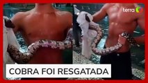 Jiboia amazônica assusta moradores e é capturada em casa de Mandaguari