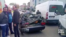 İş makinesi otomobili adeta biçti!