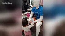 "Any time Paislee and I passed a mirror, she would light up with the biggest smile and start giggling at herself, so I got her her very own mirror," the filmer, Heidi, told WooGlobe. "Now, every single day, she walks over, gives herself kisses, and fully hypes herself up."