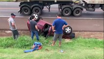 Condutor perde o controle da direção e capota Corsa na BR-277