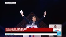 France: President-Elect Emmanuel Macron addresses crowds at the Louvre Museum
