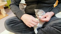 A cute kitten who endures having her nails cut looking forward to her reward.