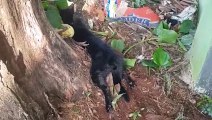 Após ficar preso no portão, gato é resgatado pelo Corpo de Bombeiros, mas ainda precisa de ajuda