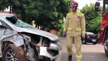 Mulher fica ferida ao colidir carro em poste no bairro Brasmadeira