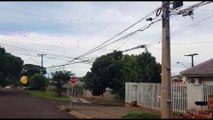 Caminhão deixa prejuízos ao arrancar fiação de poste no Santa Felicidade