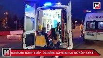 Karısını darp edip, üzerine kaynar su döküp yaktı