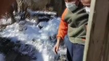 Dağda kar yağışına yakalanan çoban, keçileriyle mahsur kaldı
