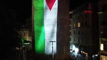 İstanbul Valiliği, sosyal medya hesabından yaptığı paylaşımda, Galata Kulesi’ne Filistin’de yaşanan soykırıma dikkat çekmek amacıyla Filistin bayrağının yansıtıldığını duyurdu.