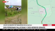 Volcó un micro en la Ruta 2 y quedó destruido: hay 2 pasajeros muertos y varios heridos