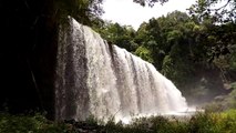 Beautiful drone footage of water rushing off Detian waterfall