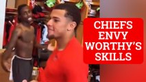Xavier Worthy impresses Chiefs teammates with locker room trick shot