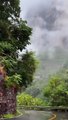 The natural beauty of Halmat in the Neelum Valley is enhanced by dark clouds, light rain, and green mountains.