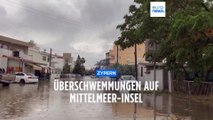 Heftiger Regen ließ in Montenegro den Fluss Grđevice in Budva über die Ufer treten. Die Fluten spülten Autos fort, die im trockenen Flussbett standen. Die Behörden warnten.