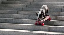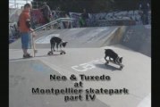 Tuxedo takes Neo by the leash for a walk together on the Place Comedie in Montpellier; then they play a Water Game ….