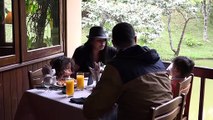 Un petit Hapalemur bien haut perché qui marque son territoire avec ses bras. C'était lors d'une visite du Parc National de Ranomafana à Madagascar en mai 2009.