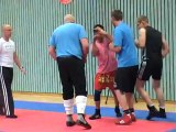 savate boxe française du mont-blanc : échauffement avant gants bleus