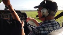 Pour son premier cours de pilotage, son instructeur s'évanouit, il est contraint d’atterrir tout seul.