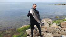 Amatör balıkçı zıpkınla 11 kiloluk levrek avladı - ÇANAKKALE