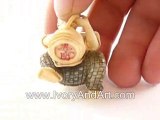 Wow... another amazing Museum quality Mammoth Ivory Netsuke from http://www.IvoryAndArt.com Master Piece Collection of Japanese Lady Resting & while she doing so she is smoking a pipe. Take a good look at the Basket of fruit she just finish to collect from her garden, this Netsuke was hand carved by http://www.IvoryAndArt.com Top Skilled Master Carver To perfection. The Netsuke was carved out from 100% Genuine Mammoth Ivory Tusk.