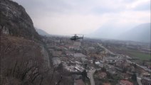 Suite aux chutes de pierres, pose d'un grillage à l'aide d'un hélicoptère sur la falaise des Balmes à Voreppe (38340)