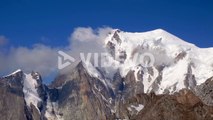 View of mont blanc, in the alps, in chamonix, with natural light at day with clouds