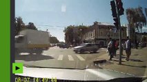 Arrête-moi si tu peux : des hommes tentent de rattraper une voiture à la dérive en Russie