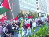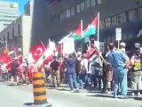 Toronto residents protest in front of the Israel Embassy & take the streets to show support for Gaza & to protest Israel's piracy & illegal blockade. This protest almost 1 week after Israeli murdered 9 humanitarian workers trying to deliver aid to Gaza. Distributed by Tubemogul.
