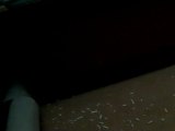 Aya, mécontente d'avoir été empêchée d'aller entre mes deux cages, me boude et me le fait comprendre en rejetant ma main de la petite maison sous laquelle elle est allée. Elle m'avait déjà fait le coup une fois où, pour ne pas qu'elle fasse de bêtise, je l'avais prise avec moi pour ouvrir à ma voisine qui avait sonné à la porte, ce qu'elle n'avait pas du tout apprécié, et me l'avait fait comprendre de la même manière ^^.