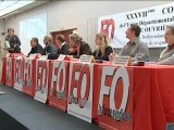 Congrès de l'independance syndicale de Force ouvrière (FO) à Toulouse : façade du lieu du congrès , assistance écoutant , les différents délégués à la tribune. Interview d'André BERGERON, secrétaire général de FO devant le bâtiment.