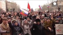 Donetsk divided as rallies for and against new Ukrainian government meet in public