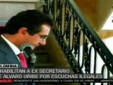 El ex funcionario del servicio secreto colombiano (DAS), William Romero, aseguró que el ex presidente Alvaro Uribe tenía conocimiento de las escuchas ilegales en contra de políticos, periodistas y magistrados. teleSUR http://media.tlsur.net//16/12/2010/23038/ex-agente-del-das-asegura-que-uribe-si-sabia-del-espionaje/