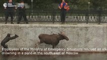 Le sauvetage unique de l'orignal à Moscou! Unique rescue of moose in Moscow!