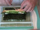 http://www.mysushidaddy.com/ Shrimp Tempura With Spicy Crab Sushi Roll. This great tasting sushi roll is sure to be a hit on anyone's sushi menu. Shrimp tempura combined with spicy crab and cream cheese then topped off with eel sauce, a HIT!!!
