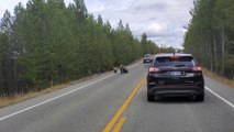 Cars Wait for Grizzly Bear and Cubs