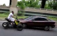 Idiot On 4-Wheeler Hits A Car Head On