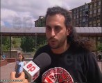 Una treintena de antitaurinos, coincidiendo con el comienzo de las corridas de las Fiestas de San Juan, han escenificado este mediodía una 'performance' a las puertas de la plaza de toros de Badajoz para exigir la eliminación de los festejos taurinos.