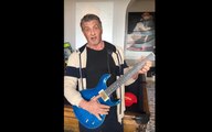 SYLVESTER STALLONE loving his brother's FRANK STALLONE TIGER electric guitar.