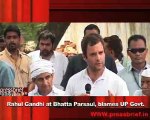 Congress General Secretary visited Bhatta Parsaul in Greater Noida, U.P. Farmers of Bhatta and Parsaul two villages in Greater Noida, were protesting against the land acquisition of U.P Government led by Mayawati. Rahul Gandhi listened to the grievances of the farmers and he blamed the U.P Government for the entire problems. He assured the farmers all the support to get them justice. Rahul Gandhi is on a tour to Bhatta Parsaul where he visited many farmers, visited the victims of the houses of farmers who was injured during the police firing.