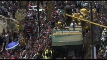 Accoglienza trionfale per gli Springboks, sul bus per Pretoria tra i fan