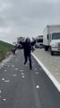 Une pluie de billets sur une autoroute